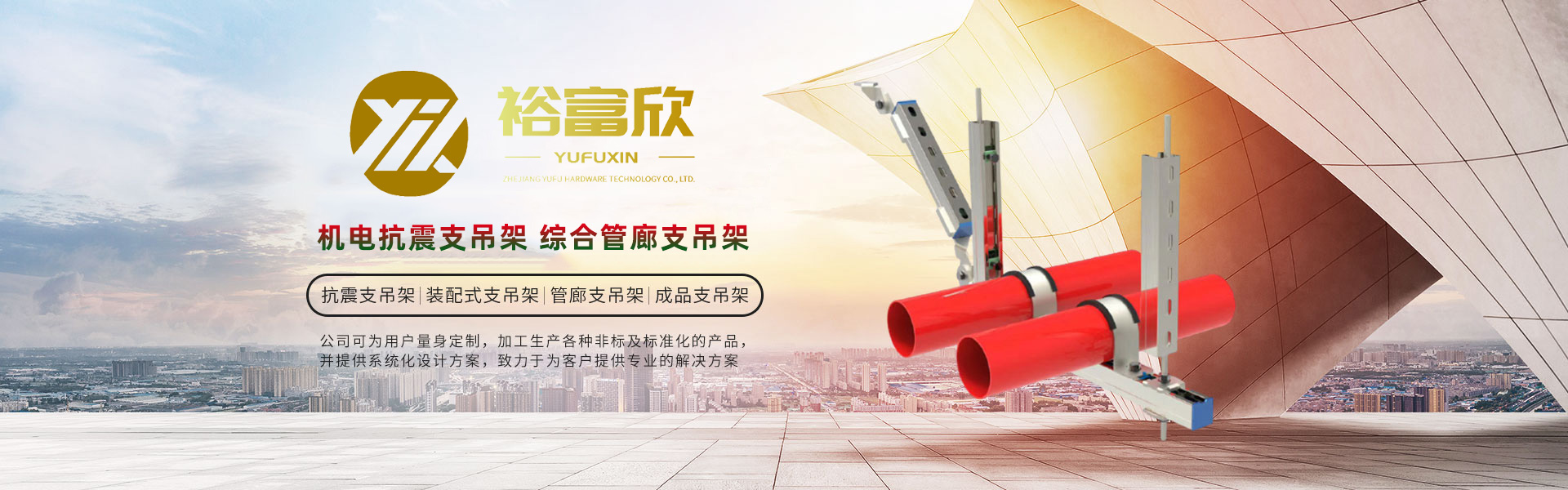 浙江裕富五金科技有限公司位于美麗的杭州臨安青山湖畔,注冊(cè)資金5000萬(wàn)人民幣。是一家集研發(fā)、設(shè)計(jì)、制造、銷售、安裝、技術(shù)服務(wù)于一體的,專業(yè)從事抗震支吊架、管廊支吊架、綜合承重支吊架等,多功能、多元化的現(xiàn)代新興科技企業(yè)。 公司技術(shù)力量雄厚、設(shè)備齊全、工藝先進(jìn)、管理體系高效完善,在注重產(chǎn)品設(shè)計(jì)、選材、結(jié)構(gòu)工藝等細(xì)節(jié)基礎(chǔ)上,嚴(yán)格按照GB/T37267-2018、GB/T9978.1-2008等國(guó)家標(biāo)準(zhǔn)進(jìn)行生產(chǎn)和管理,立足本土并扎根施工現(xiàn)場(chǎng),多次調(diào)研測(cè)試并持續(xù)改進(jìn),產(chǎn)品通過(guò)了國(guó)家建筑工程質(zhì)量監(jiān)督檢驗(yàn)中心的檢測(cè),打造了“裕富欣”品牌。